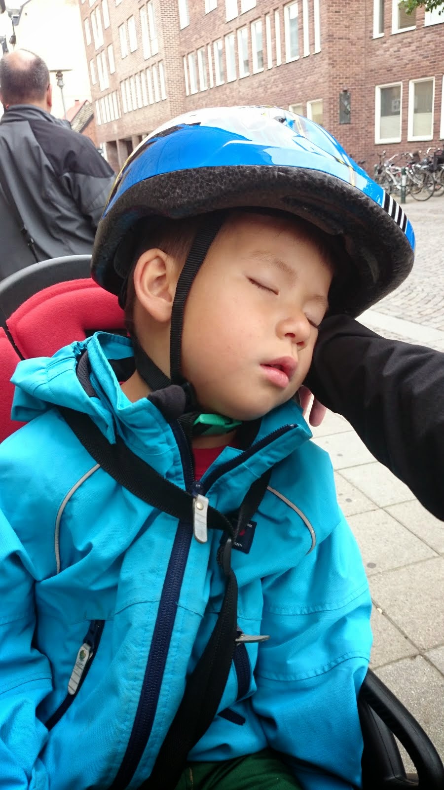 Pinga biked to town with Momo-chan. He was awake until just before they got to town center. Pinga thought that he could fall asleep from the cobblestone road and he did. His head was moving left to right while biking.