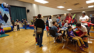 There was a community festival today. As it was rainy, it became indoor at the community center. First they enjoyed bouncy castle.