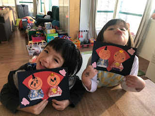 They created origami hina-ningyo with their nanny. Interesting to see how different the faces of dolls are. Doll festival is on March 3.