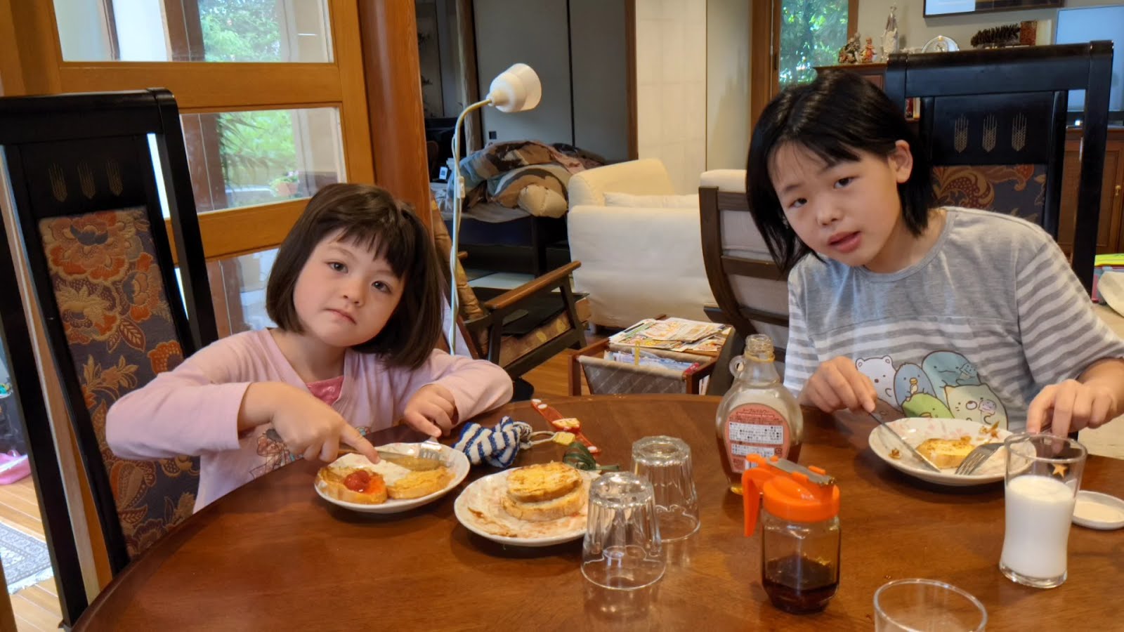 In order to leave for school at 7:55, they need to be up around 7. It's not so difficult to get Coco-chan up but QP-chan is the tough one.
