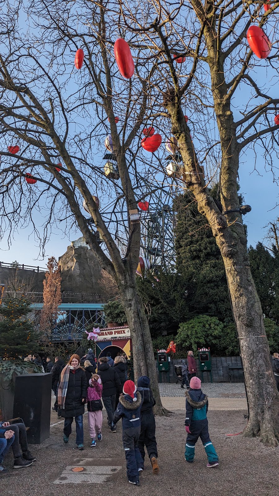 They went to Tivoli in Copenhagen today. There were there when it's opened at 11. There was a queue to enter but it wasn't so crowded inside. Then it became more and more people towards the late afternoon.