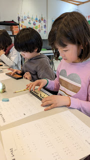Twins learned how to use soroban at the Japanese school. Pinga was there to watch the math class and it was interesting for her too.